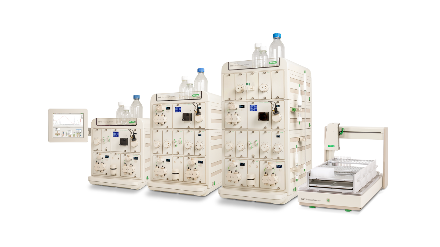 O NGC Discover Chromatography System é uma plataforma de cromatografia líquida (FPLC) para purificação de proteínas e outras biomoléculas, com operação intuitiva e recursos para desenvolvimento de métodos.