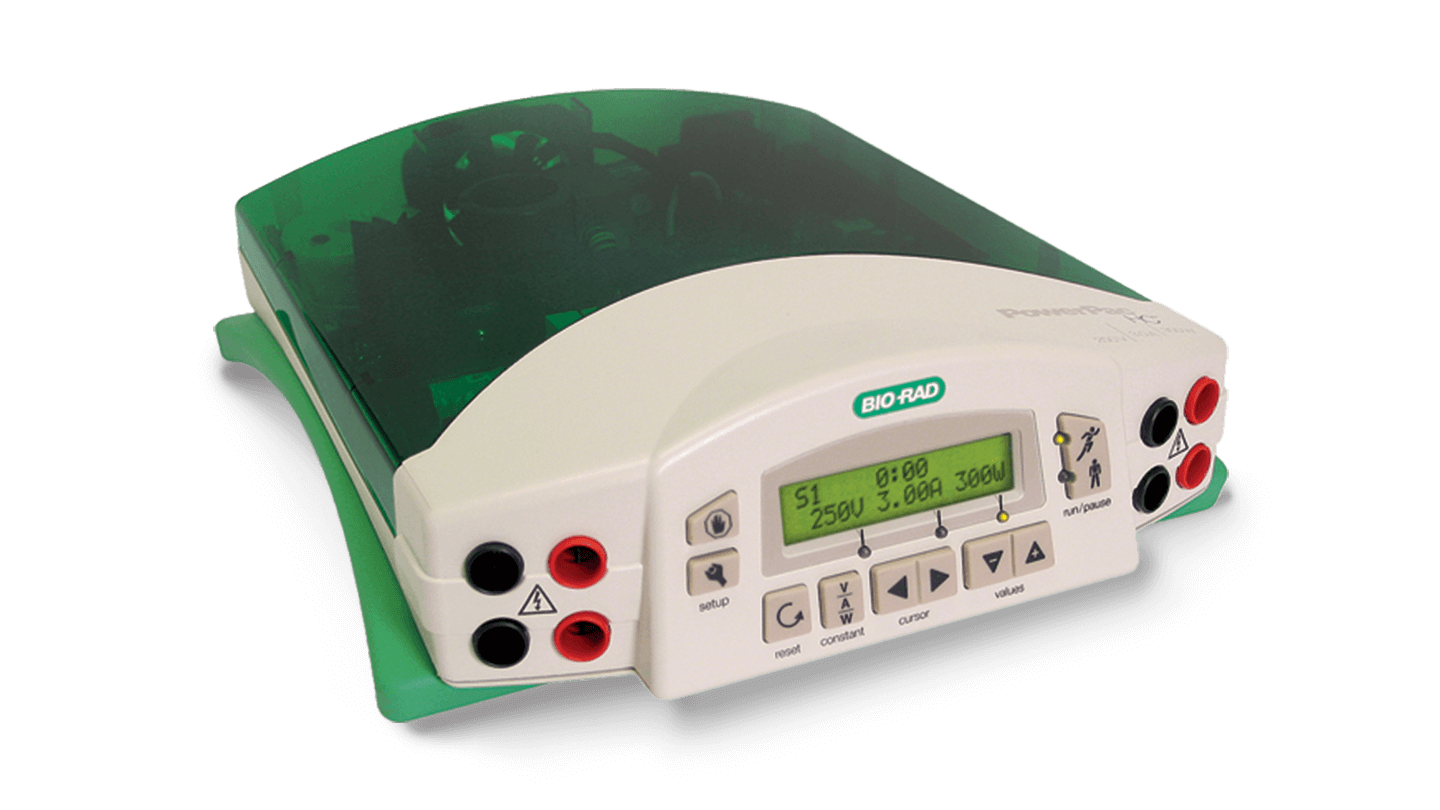 A fonte PowerPac HC (High Current) é indicada para aplicações que exigem alta corrente, como transferências de proteínas e eletroforeses mais demandantes. Fornece controle preciso de parâmetros para resultados reprodutíveis.